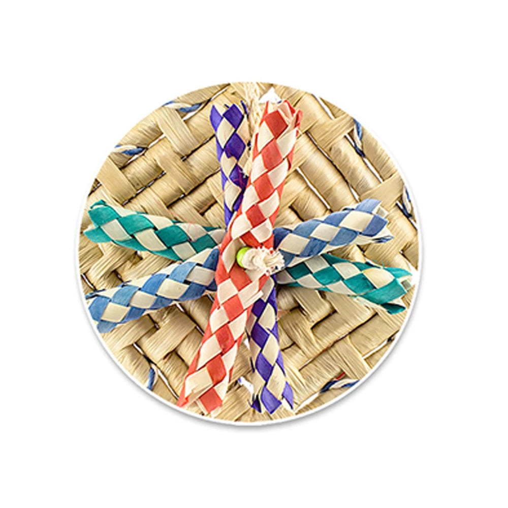 Made with shreddable bamboo sticks woven onto a natural raffia mat, this toy offers exciting textures for beaks to explore. It’s finished with a sisal rope loop and sturdy pear link, making it easy to hang in any cage or play area.