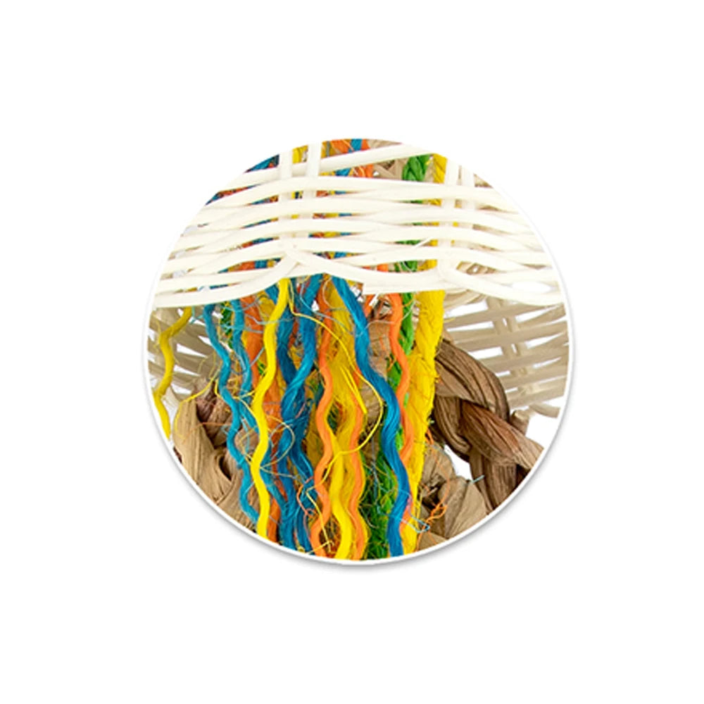Crafted from a playful mix of plaits of seagrass, sisal rope, loofah chews, wooden blocks, and a central vine ball, this toy offers layers of shreddable, chewable fun that helps promote natural behaviours like foraging and beak conditioning.