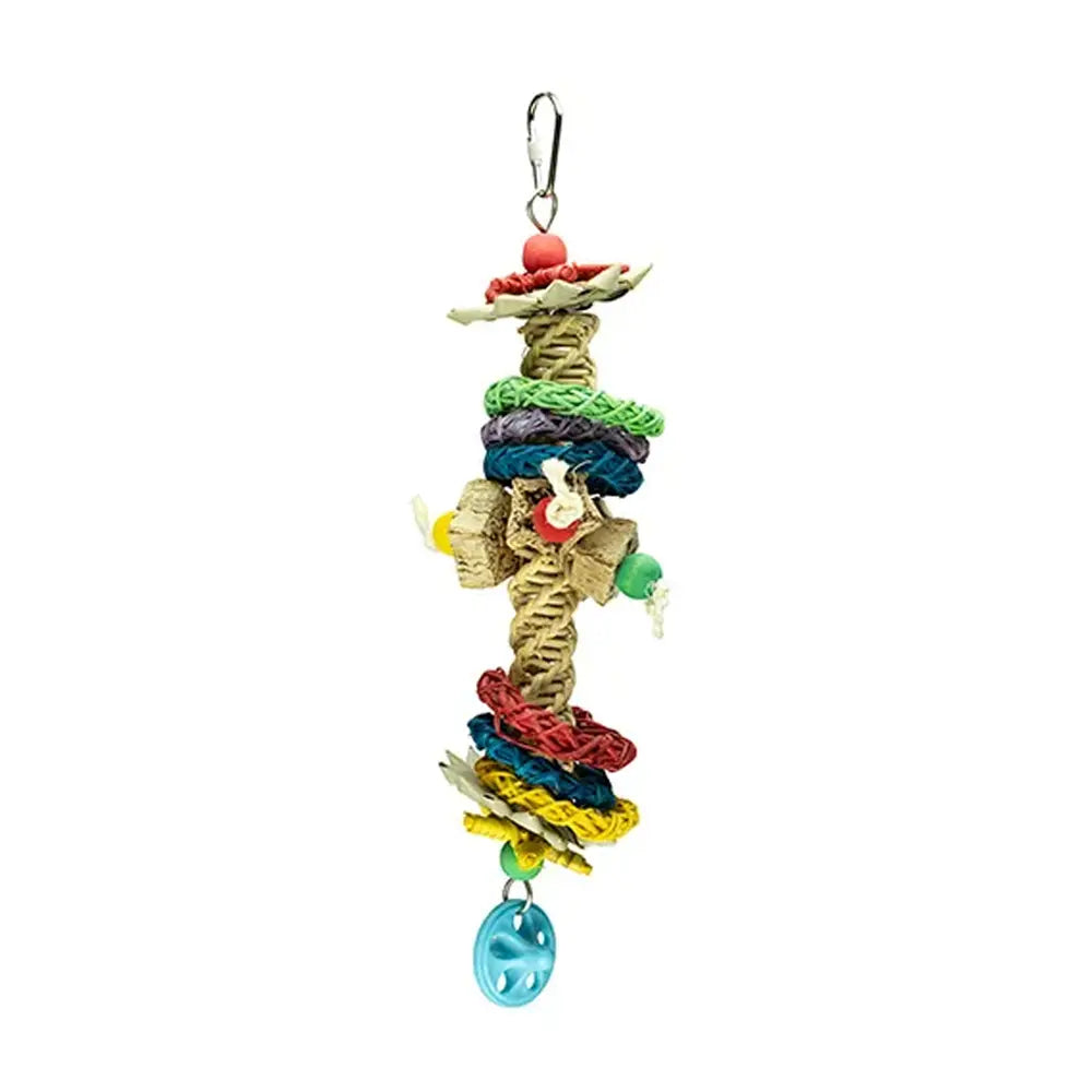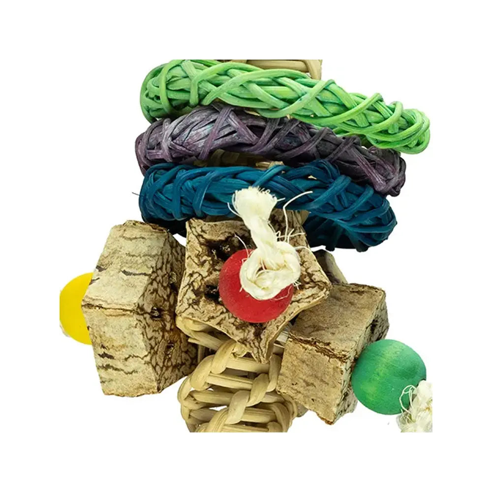 Just like the vibrant jungle, the Bainbridge Jungle Stick is teeming with excitement, perfect for mid-sized to smaller birds. It's adorned with chewy bits, dyed in natural vegetable colours, offering various textures and playful vine rings.