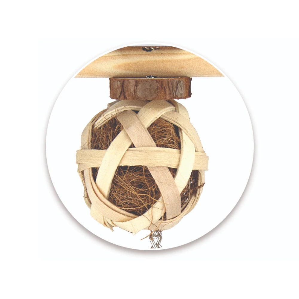 Featuring chunky wooden slices and bamboo balls filled with chewable coconut fibre, all suspended on a sturdy metal chain, this toy is perfect for birds that love to chew and explore. Its natural design not only offers enrichment but also adds a rustic charm to your bird's environment.