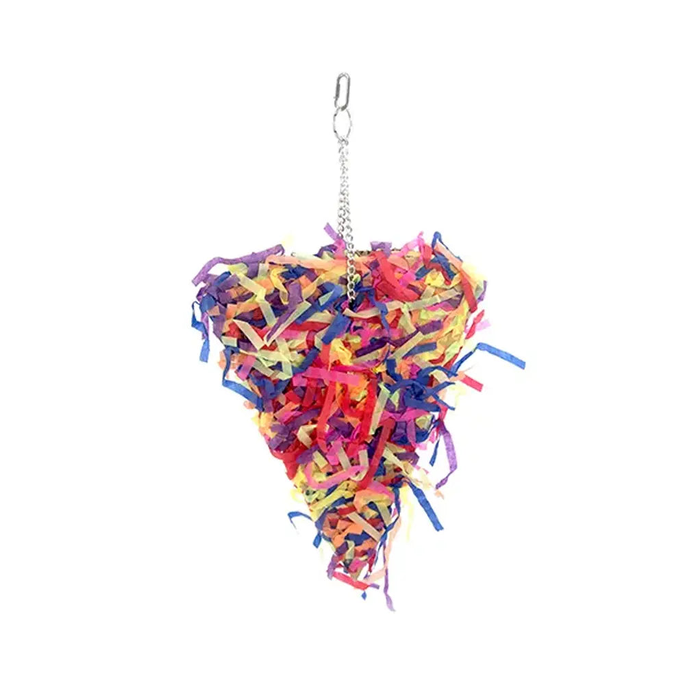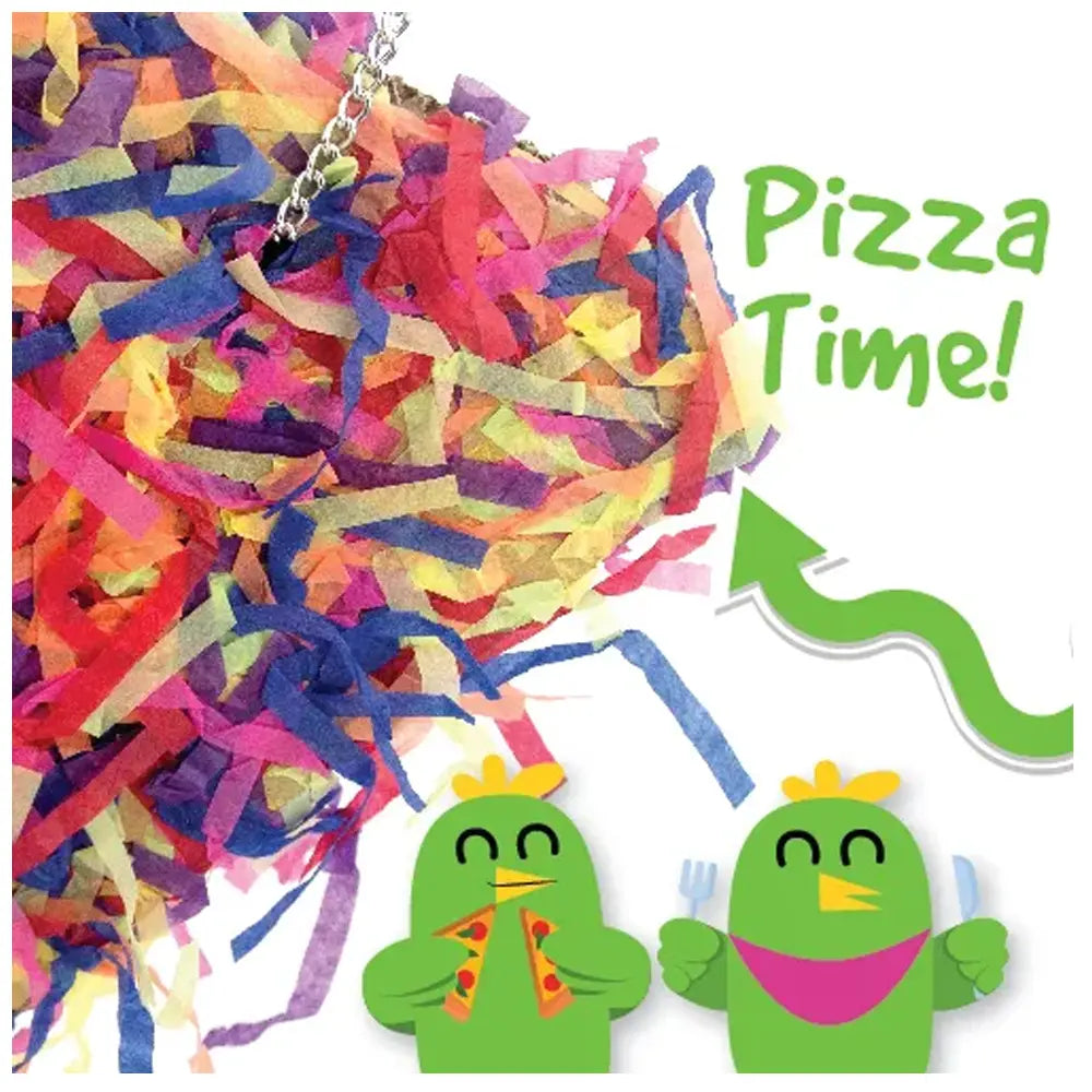 The Shredz Pizza is designed to be destroyed. It keeps your bird occupied by allowing them to chew, tug and dismantle, keeping them engaged for long periods of time.