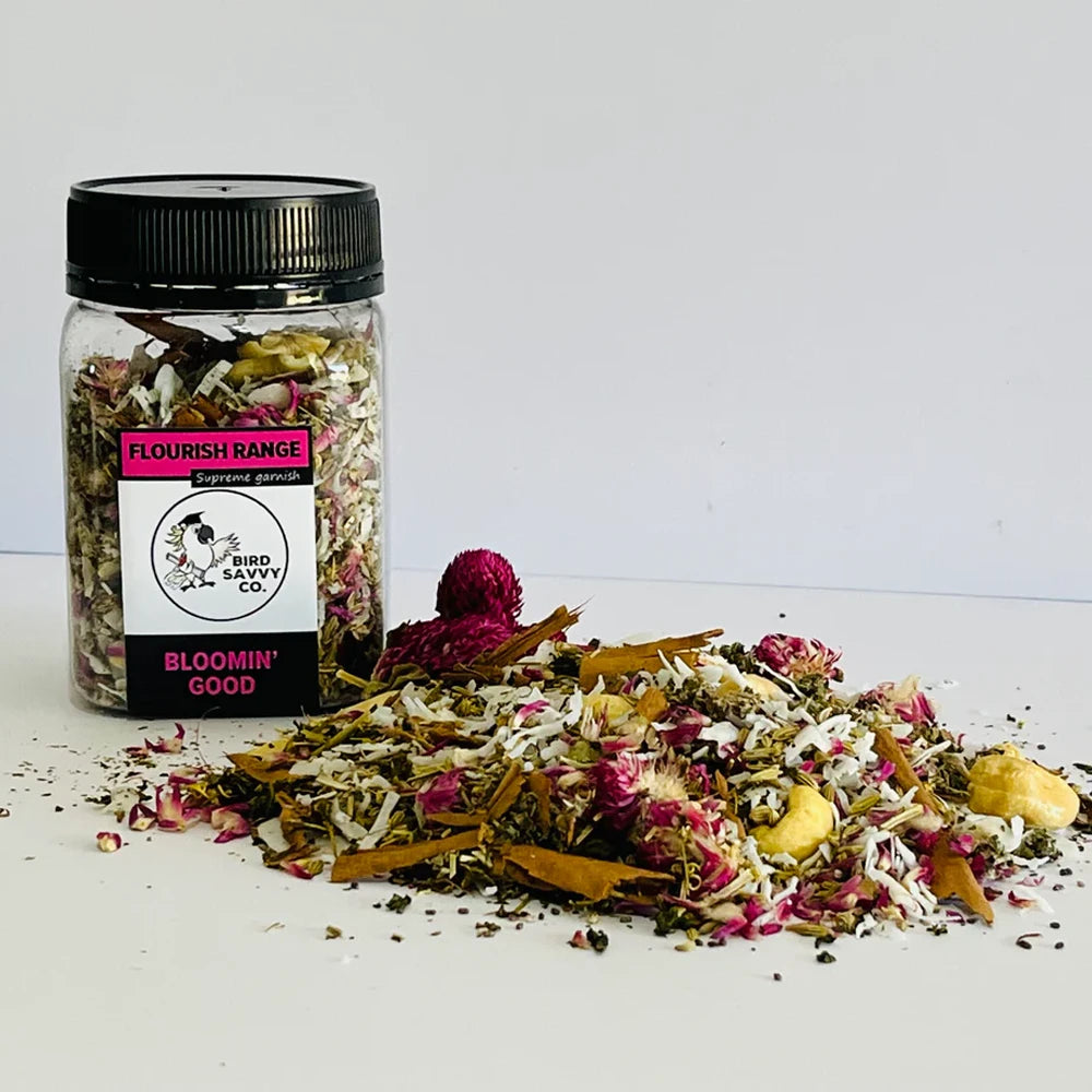 Plenty of interesting taste and textures that is appealing to a wide range of birds. Flourish Range is packed full of antioxidants, vitamins, minerals, essential amino acids and protein. Encourage foraging by sprinkling over fresh or dry foods, or get creative and hide it for mental stimulation and wellbeing.