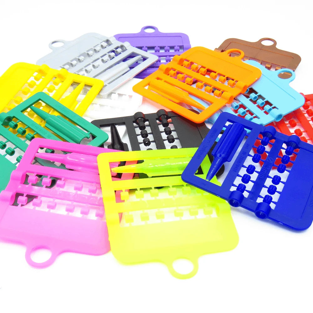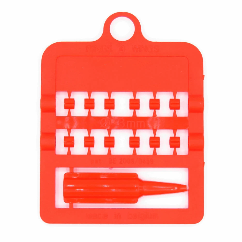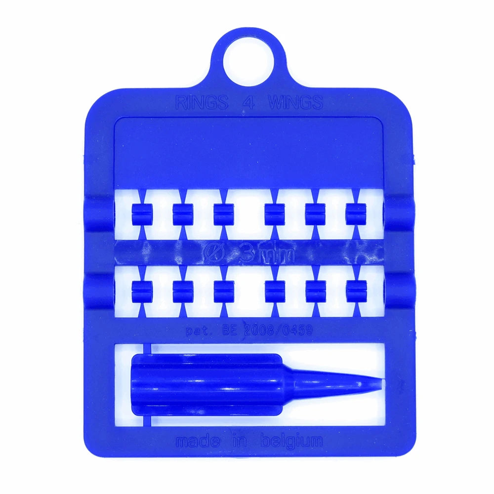12 unnumbered split rings and a fitting tool for ease of application. Split rings can be twisted off by hand. Made from commercial quality plastic with the benefit of being lightweight for your bird.