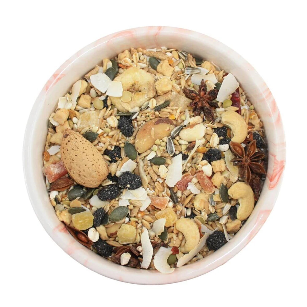Galahs are known for their hearty appetites and susceptibility to obesity-related health issues. This blend offers a balanced assortment of their favourite foods in carefully measured portions, supporting their overall health and ensuring dietary contentment.