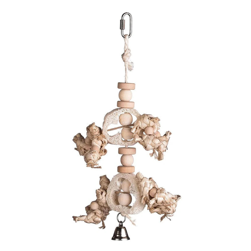 The Natural Double Trouble is for those small to medium birds that love to chew! Featuring natural seagrass, wood, vine balls, loofah and a nickel plated bell brings all the natural chewing fun to your bird. The toy has been crafted to provide fun and entertainment.