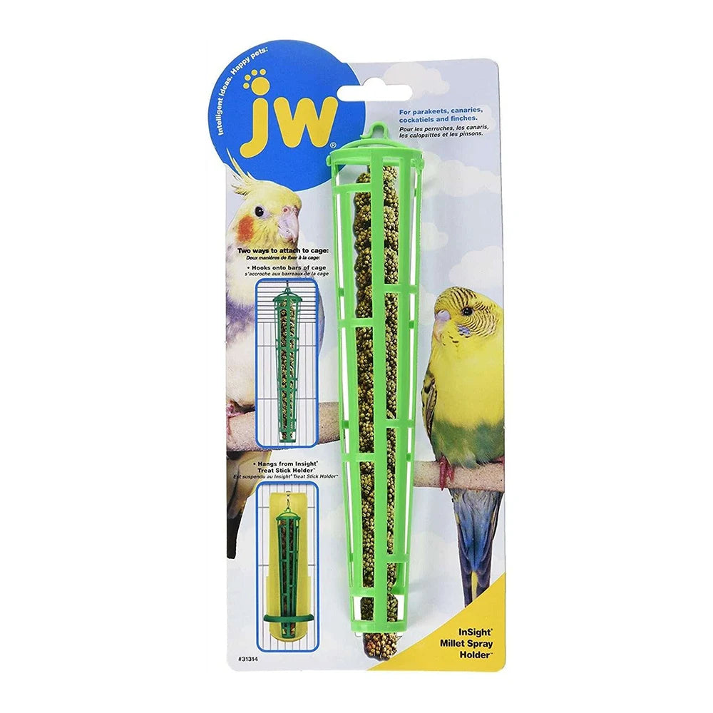 The JW Pet Millet Spray Holder makes offering millet treats to your pet bird effortless. Designed for your feathered friend's well-being, millet treats stimulate a pet birds natural foraging instincts.