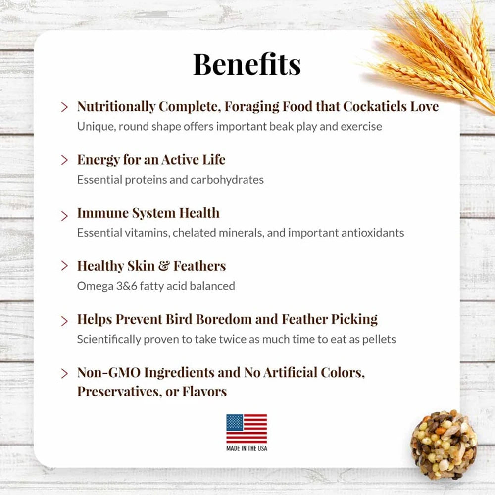For picky cockatiels who resist pellets, Nutri-Berries are a perfect choice. Packed with crunchy whole grains, hulled seeds, and a touch of pellet goodness, they deliver balanced nutrition and irresistible taste. Unlike regular seed mixes, Nutri-Berries keep the vitamins and minerals intact in every bite—no nutrition lost to empty hulls. Crafted with Omega 3 & 6 for immunity and healthy feathers, Nutri-Berries are also free from artificial colours.
