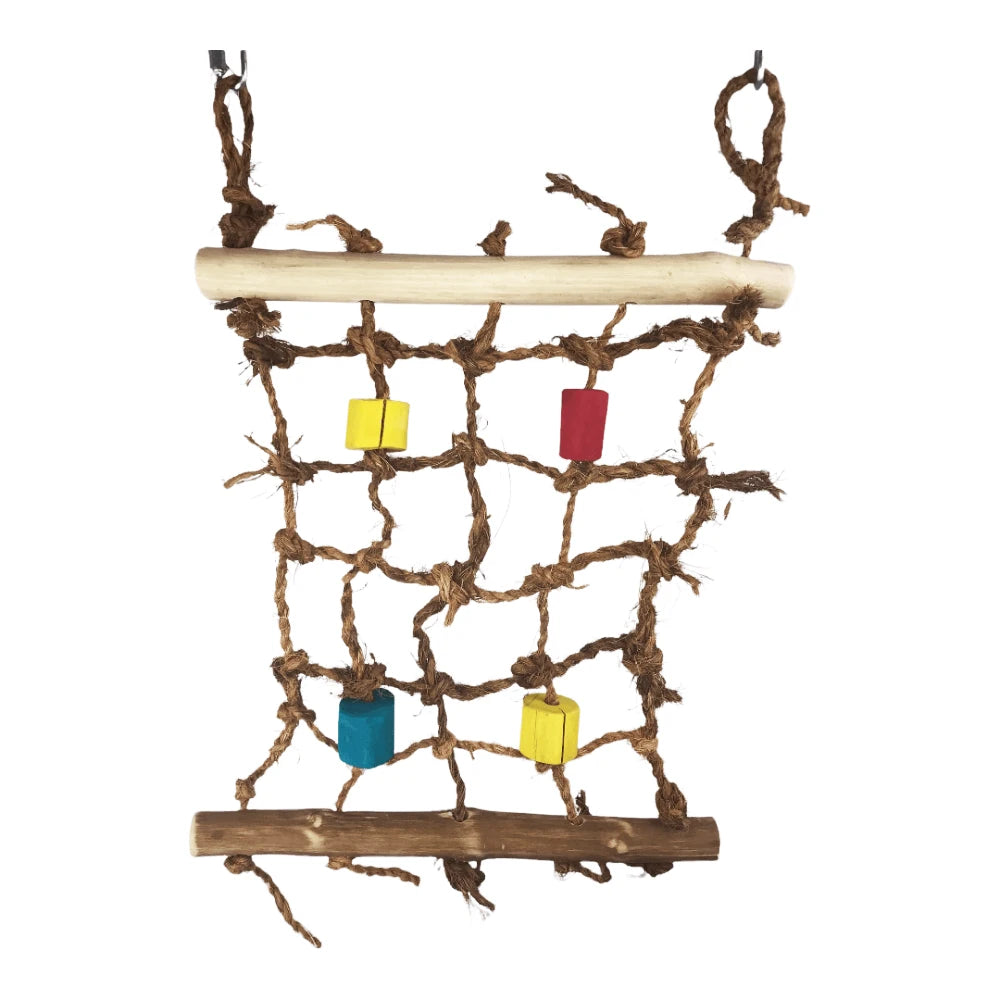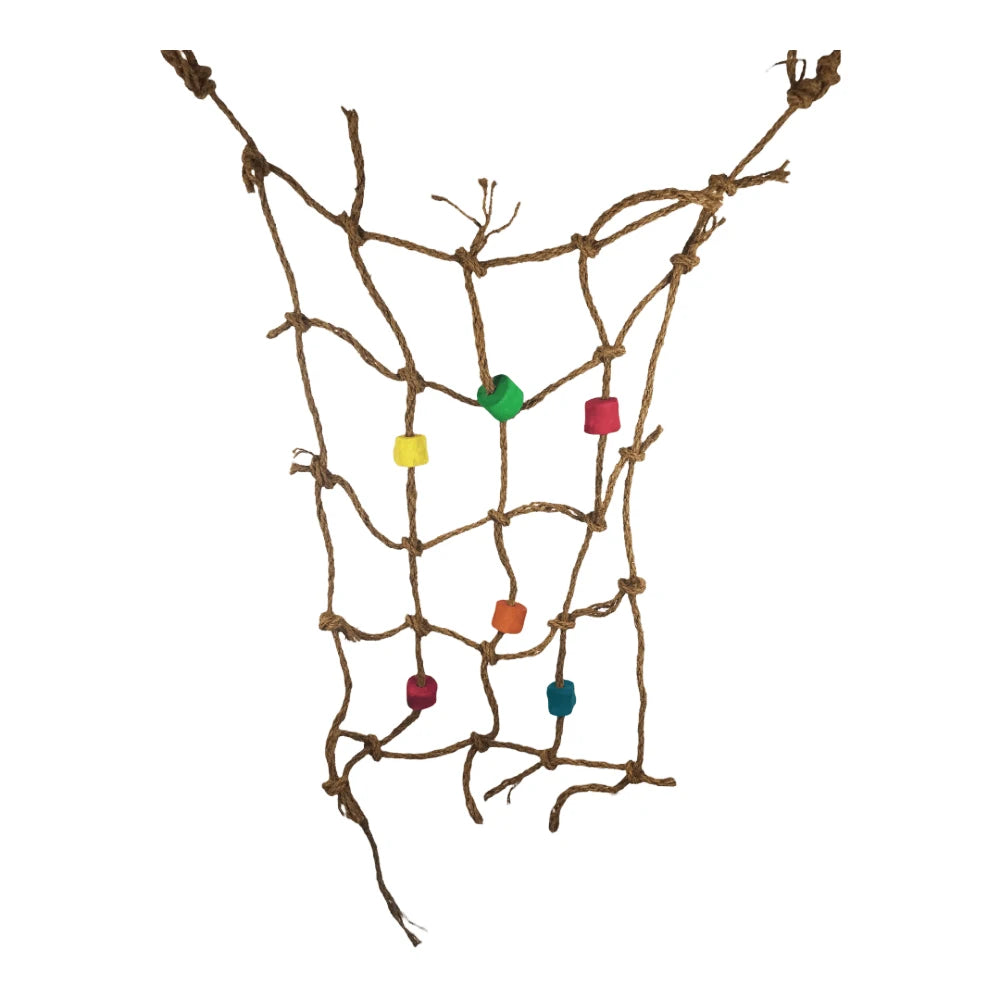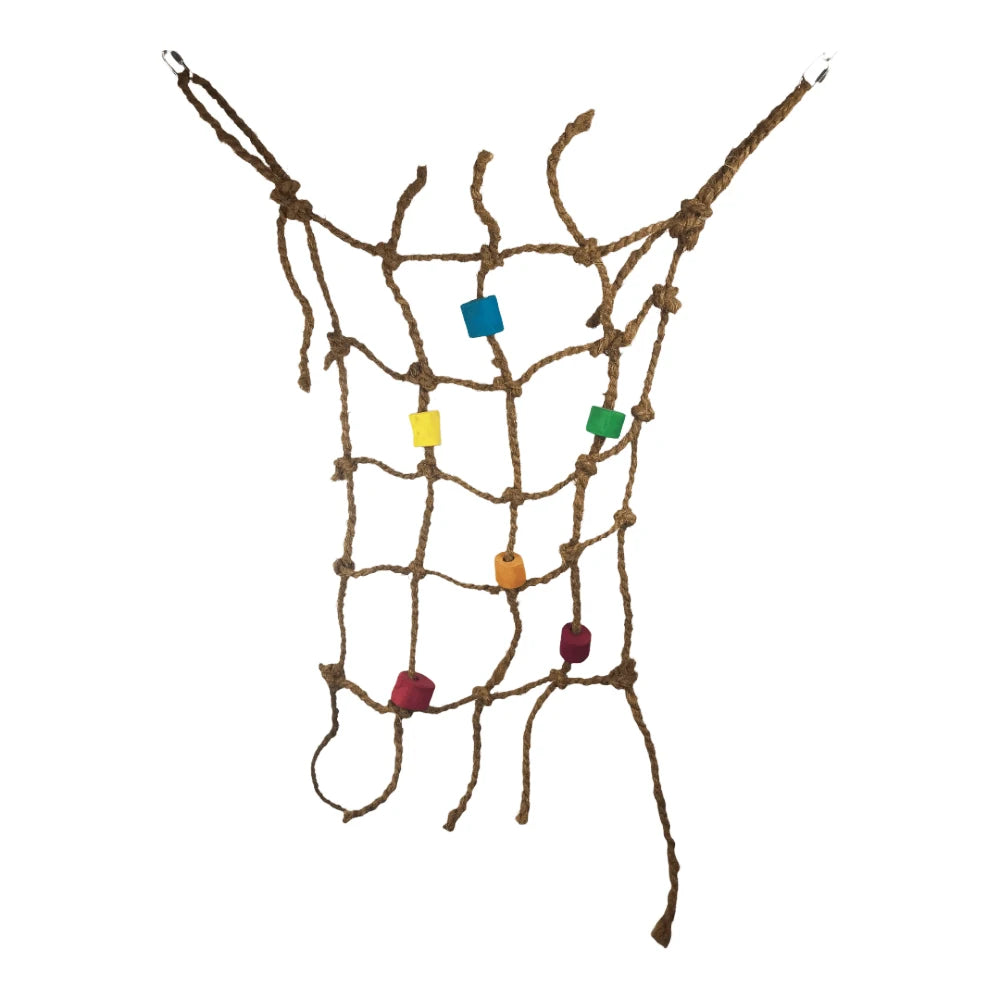 Let your feathered friends, climb and explore the Nino's Java Cargo Net made from coconut rope.. The net can be hung inside or outside of your bird cage.