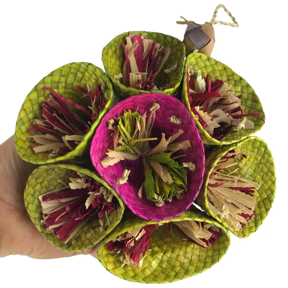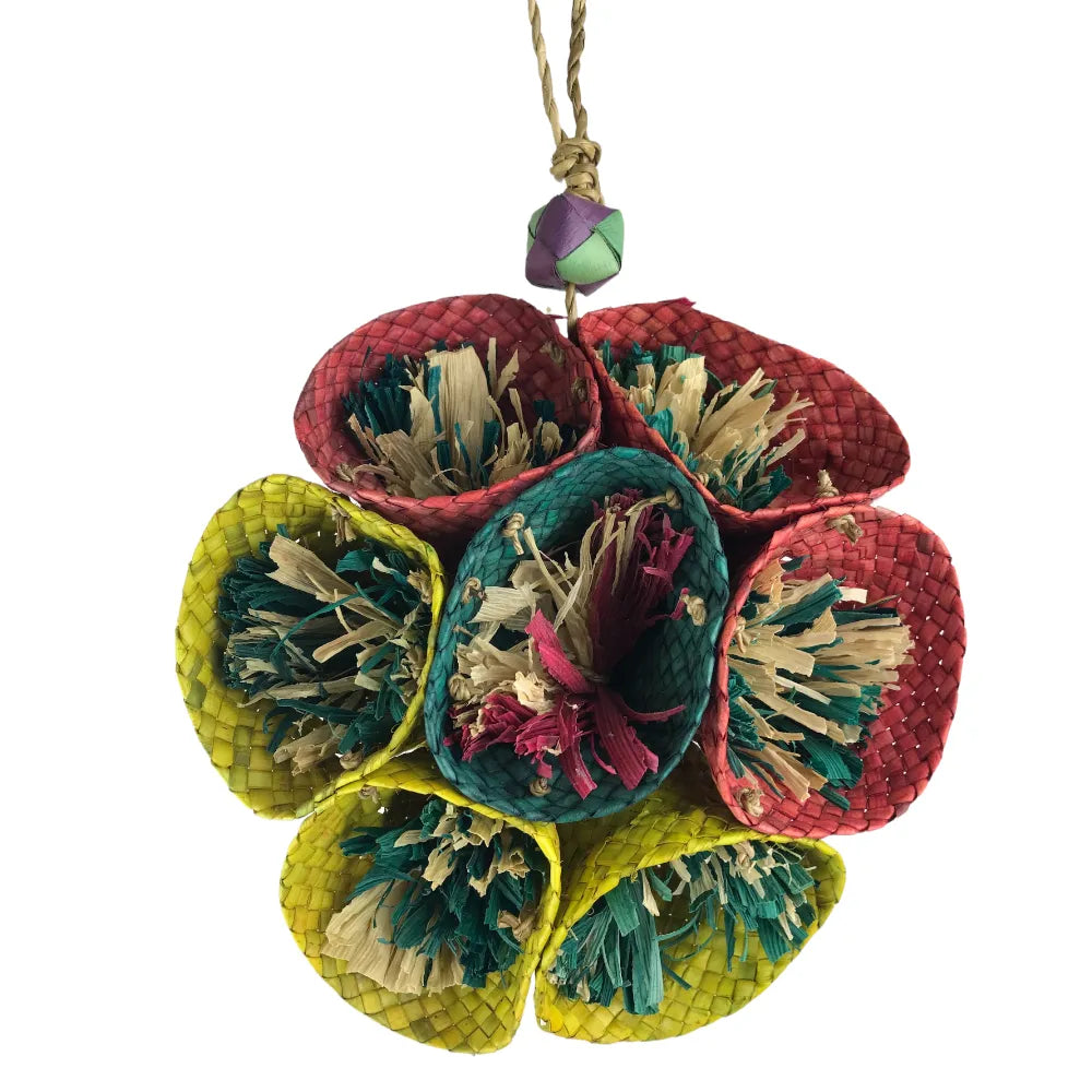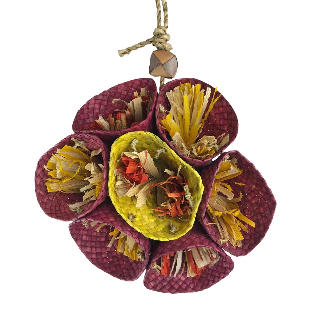 The Nino’s Java Rosie is a vibrant, blooming addition to any bird’s cage that offers as much versatility as it does colour. Shaped like a radiant flower, this toy features seven individual "petals" or cups, each overflowing with bright palm leaf streamers.