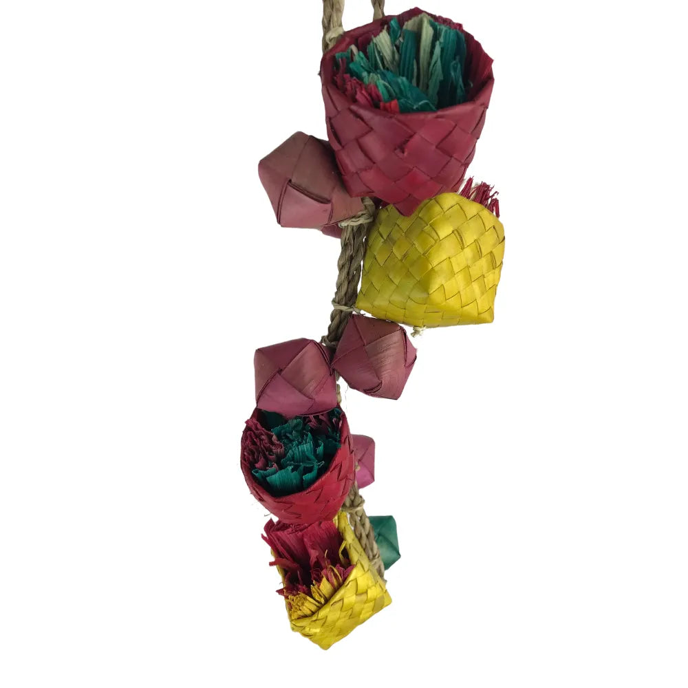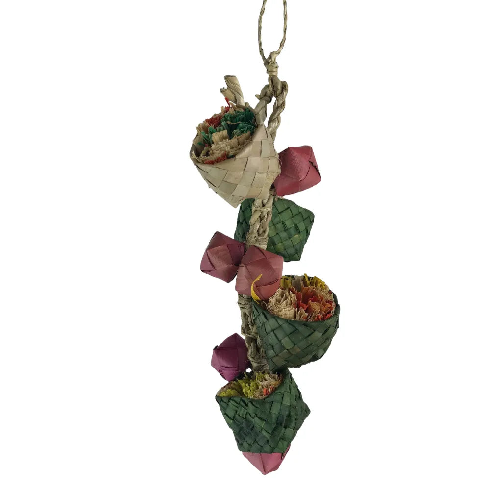 The Nino’s Java Tree Houses are essentially a "high-rise apartment block" of fun for your bird! Designed for those who love to climb and investigate, this vertical toy features four individual baskets suspended on a sturdy, natural seagrass rope.