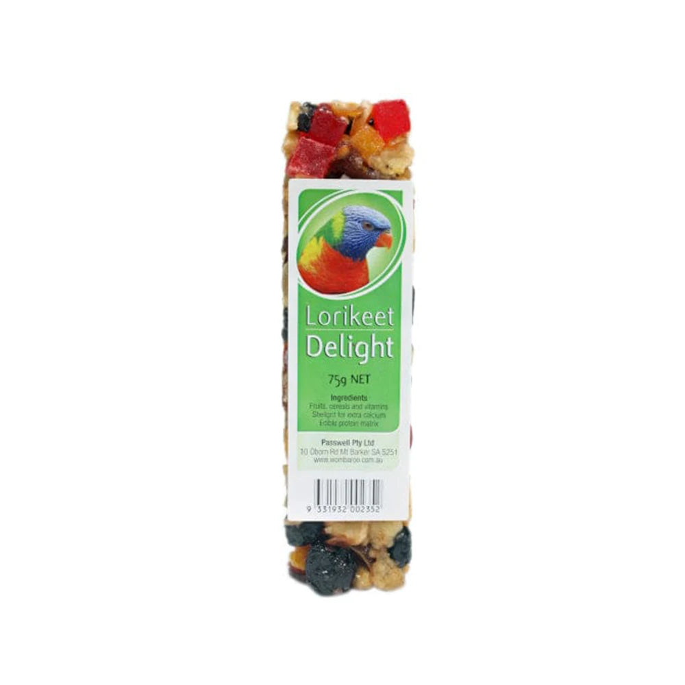 Treat bar containing a combination of dried fruits including paw paw, pineapple & banana. Suitable for all lorikeets, lories and fruit-eating parrots.