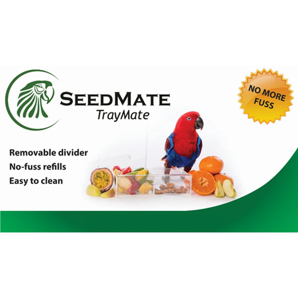 The SeedMate TrayMate conveniently slides into the food hopper of a Large SeedMate No-Mess Bird Feeder and includes an internal divider to allow separation of different food types.