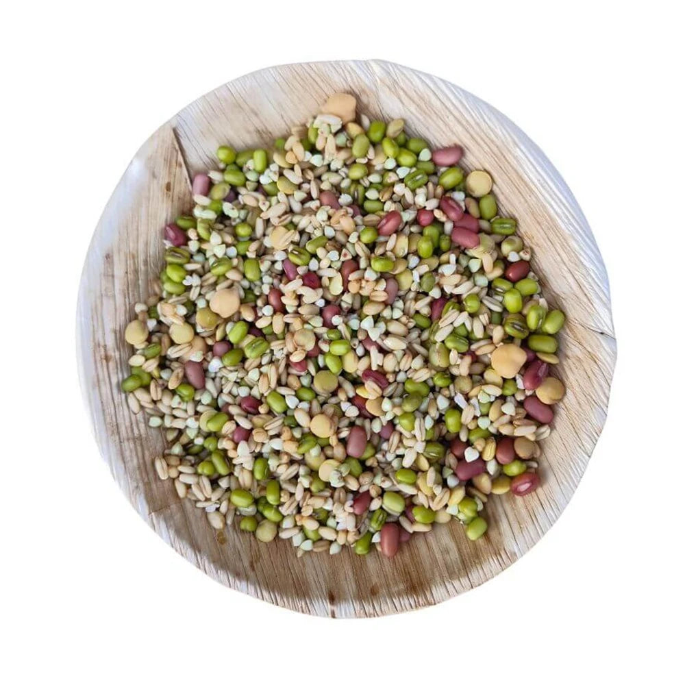 Mung Beans, Wheat Grains, Green Lentils, Adzuki Beans, Chickpeas, Buckwheat, Oat Kernels.