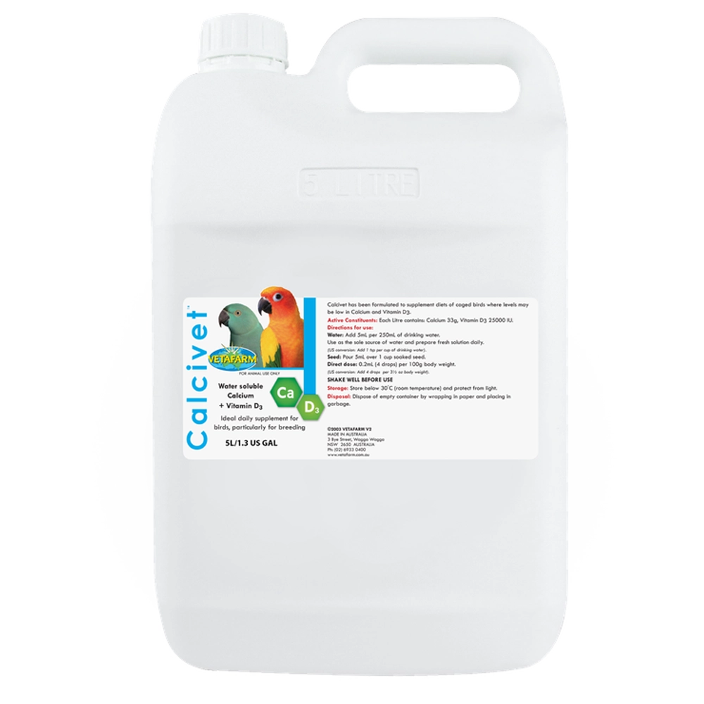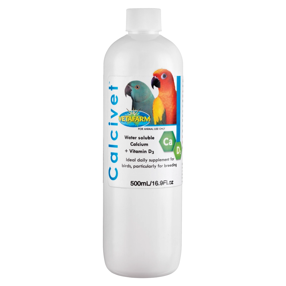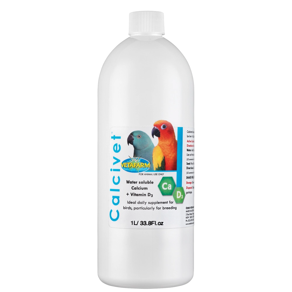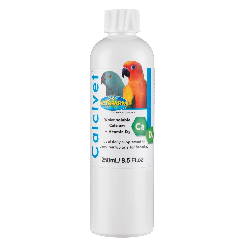 Can use with: Calcivet will greatly enhance available calcium in the birds diet; additional vitamins and mineral supplements are recommended for birds on seed diets.