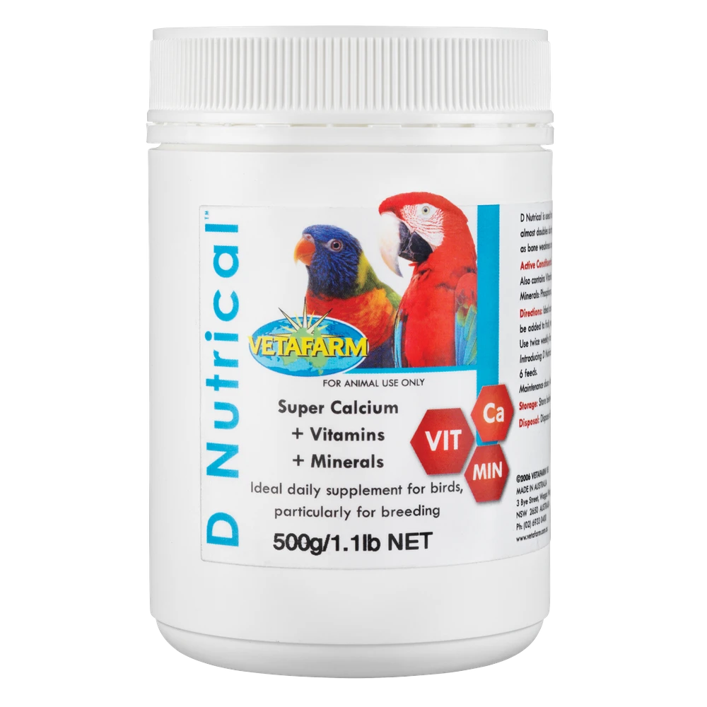 D Nutrical should not be used in conjunction with commercially prepared feeds (e.g.: commercial dog feed, commercial hand rearing mixes) unless instructed by your Veterinarian.