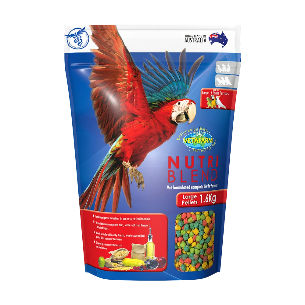 Nutriblend provides your bird with the balance it needs for optimum feather development, tissue and brain function when fed as your bird’s primary diet (80% of daily feed consumed).