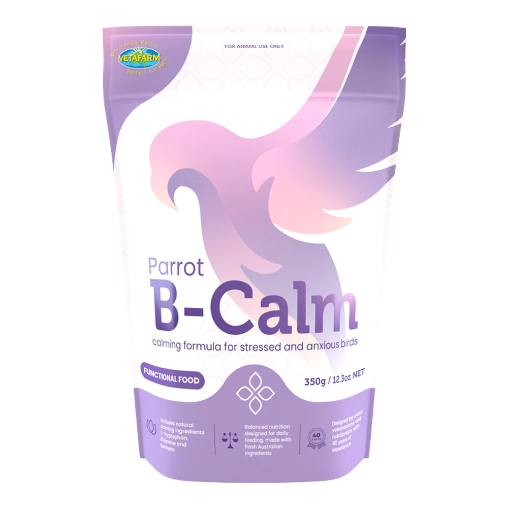 Vetafarm Parrot B-Calm is a functional complete diet formulated by avian veterinarians that provides balanced nutrition and supports the reduction of stress and anxiety with natural ingredients.