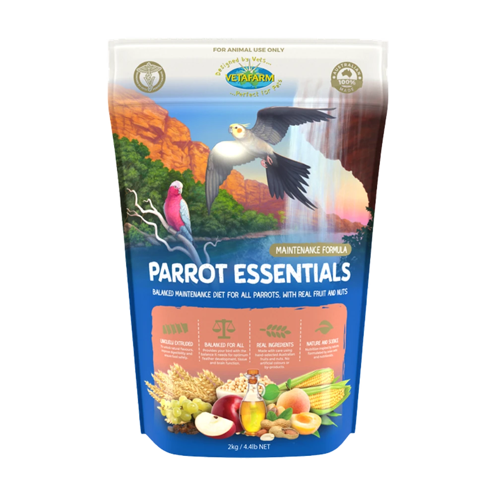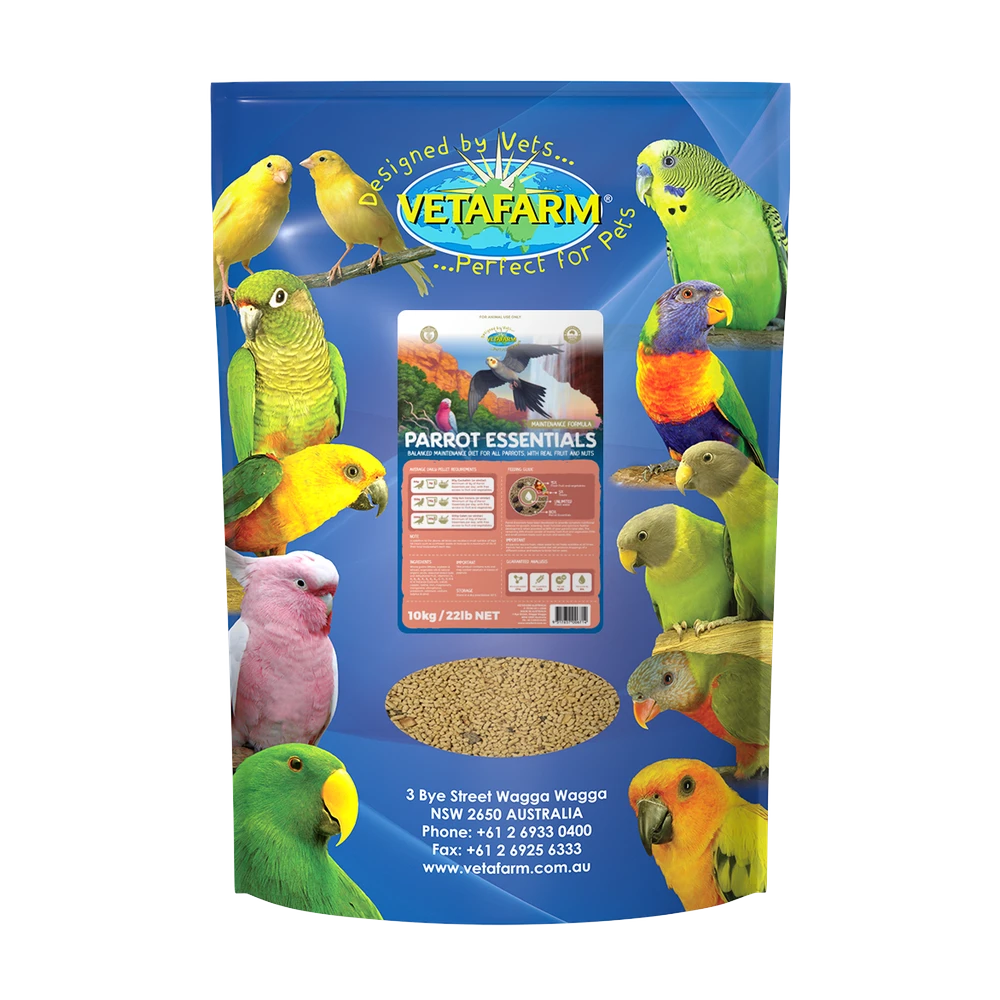 Parrot Essentials supplies the balance needed for optimum health (feather development, tissue and brain function), while also offering variety into the daily diet with the inclusion of hand-selected fresh fruit and nuts from Australian farms.
