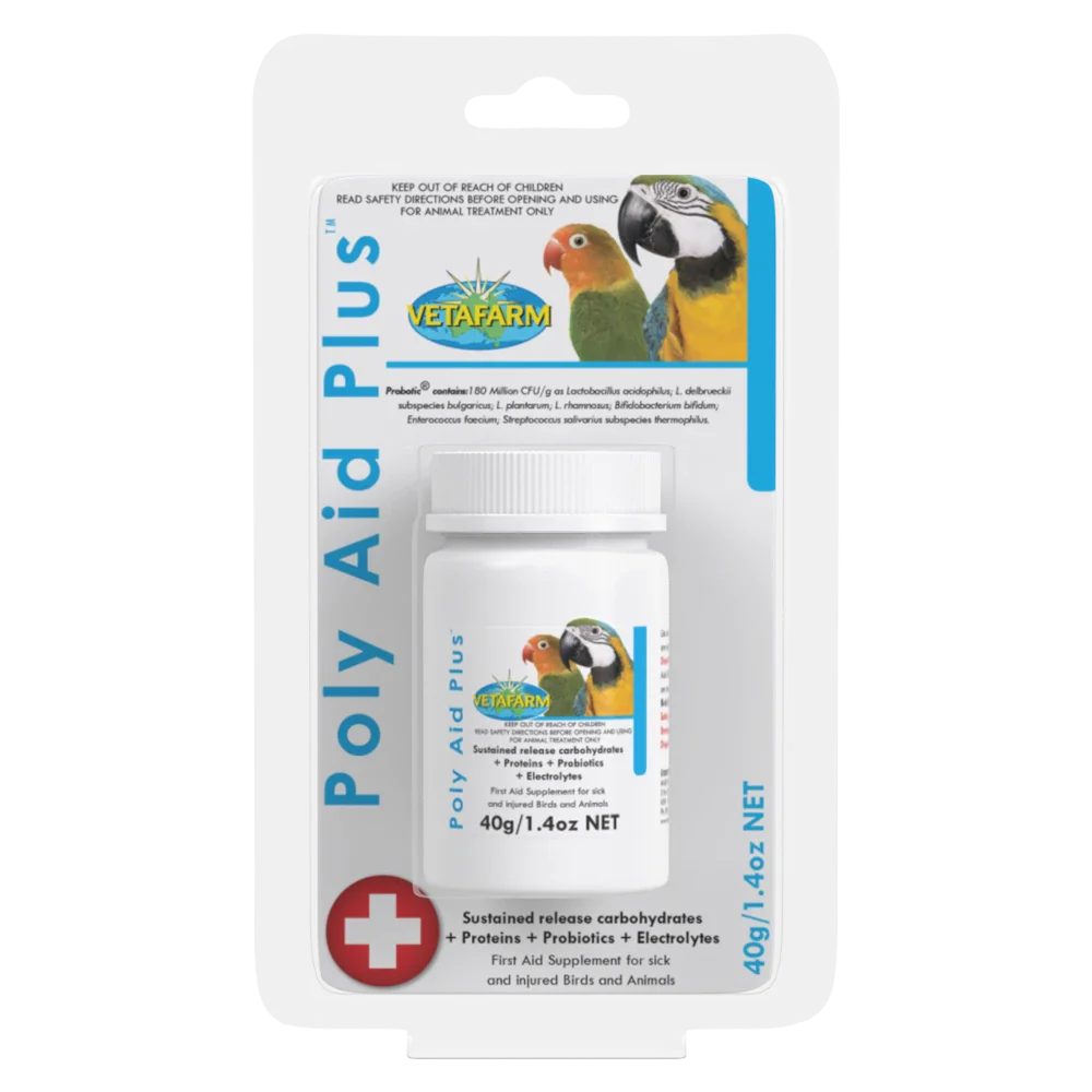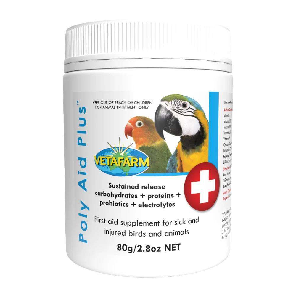 Directions: Add 5mL of water to 10g of Poly-Aid Plus and make into a slurry. Make fresh daily for each use, discard any unused portion. Birds/Small Animals: Administer as required.